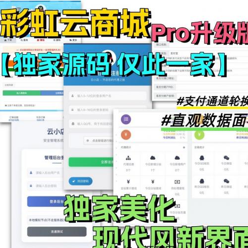 全网首发 彩虹云商城二开美化版 沉梦云Pro美化版 新增超多功能