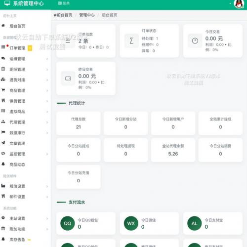 秋云自助下单系统V2最新版 彩虹云商城二开美